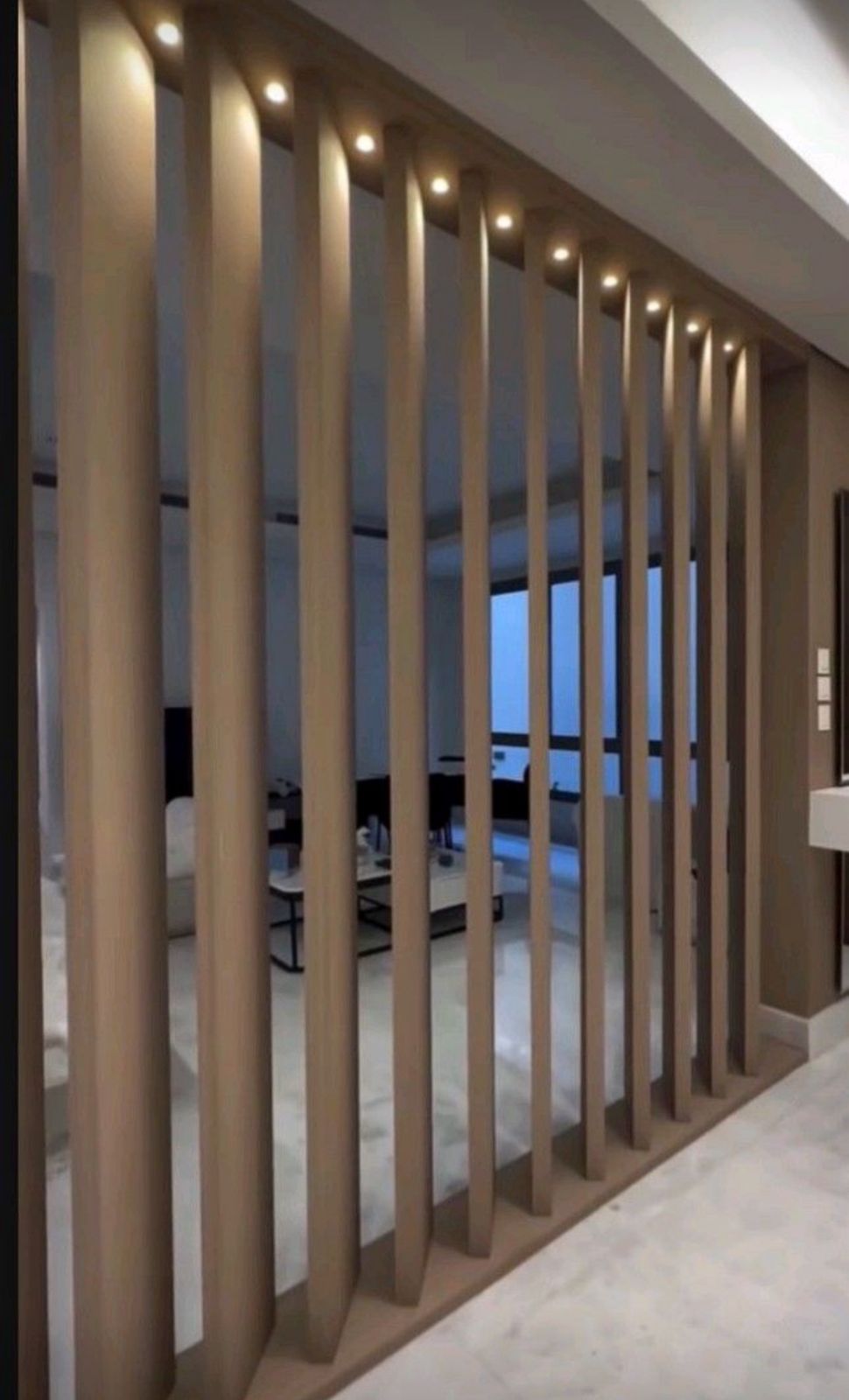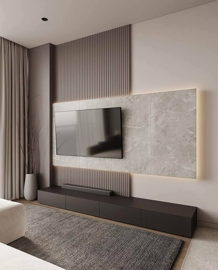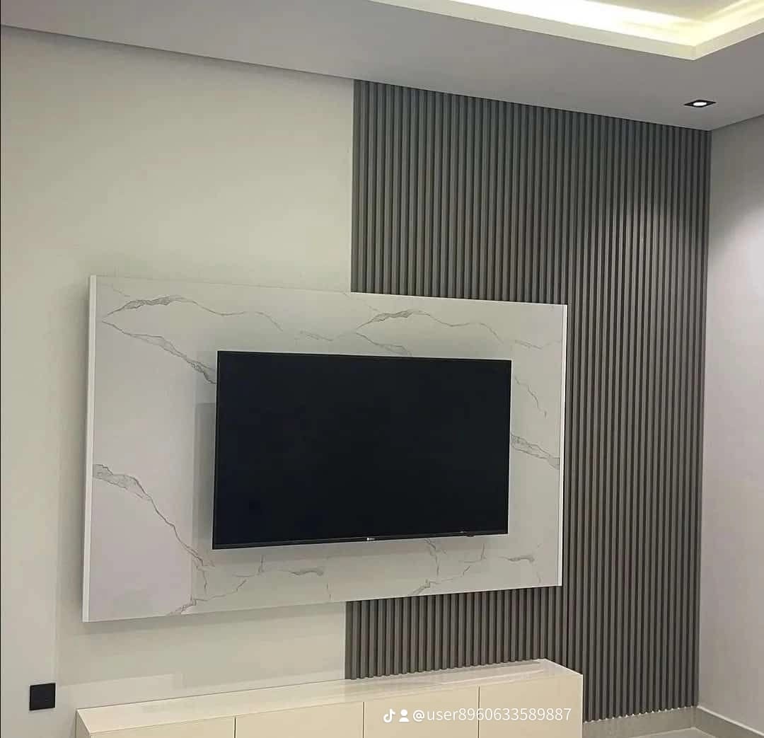 2. ديكورات الشاشات المدمجة مع الرخام أو الخشب: