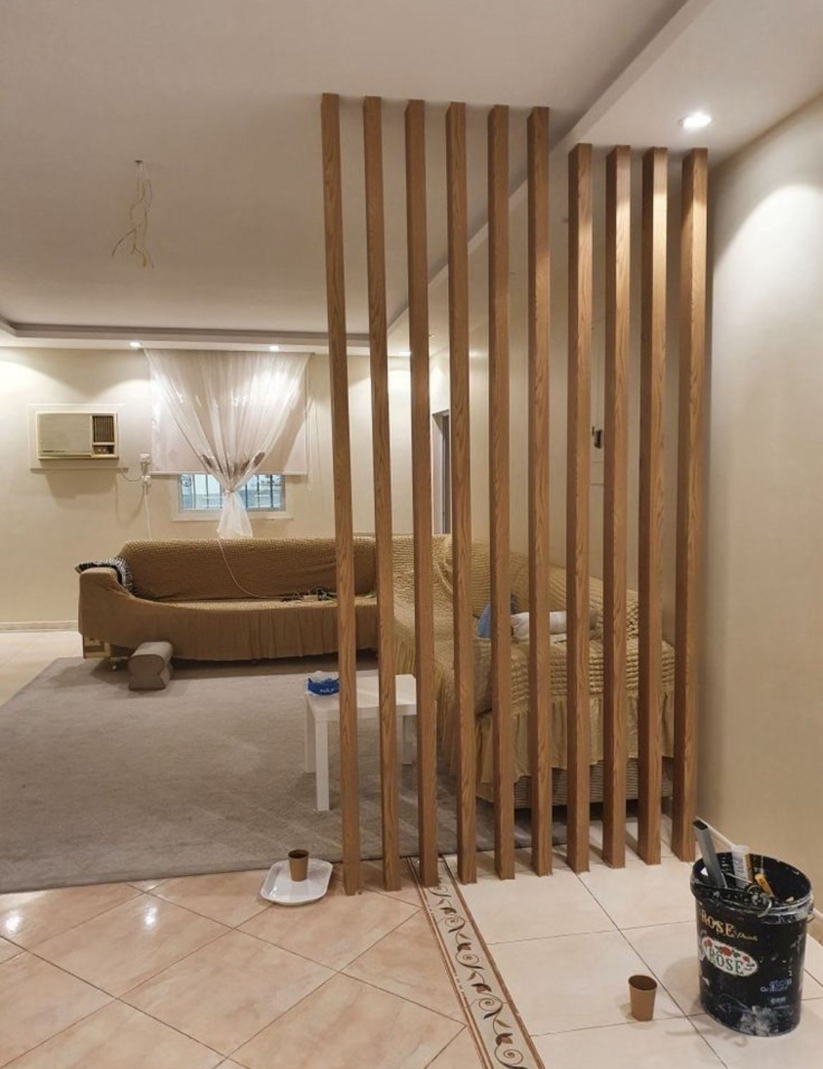 من أقوى صيحات هذا العام هو دمج الجبس بورد مع بديل الرخام أو شرائح الخشب (PVC). هذا المزيج يعطي فخامة لا تضاهى، خاصة عند تنسيق لون الخشب مع الأرضيات.