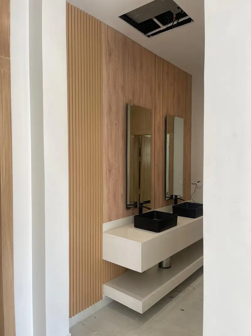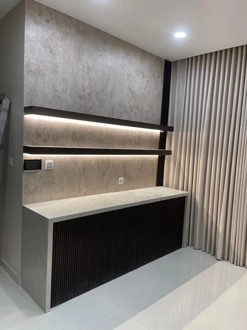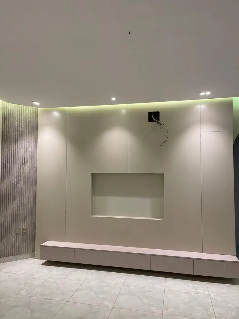 • ​تنفيذ ديكورات المودرن: مثل خلفيات الشاشات، وديكورات الاستيل، والمرايا.