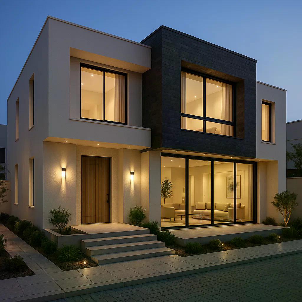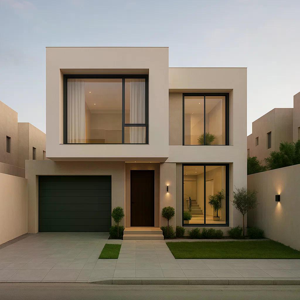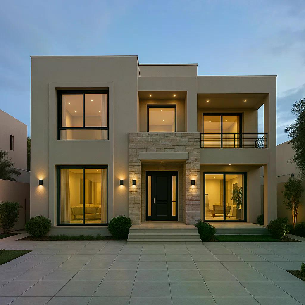 - تصاميم هندسية تبرز التفاصيل المعمارية للفيلا.